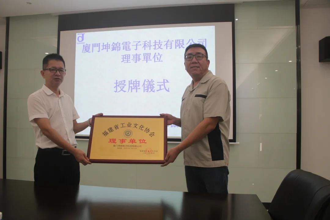 【陈良财秘书长(左)为王刚副总经理(右)颁发理事单位牌匾】