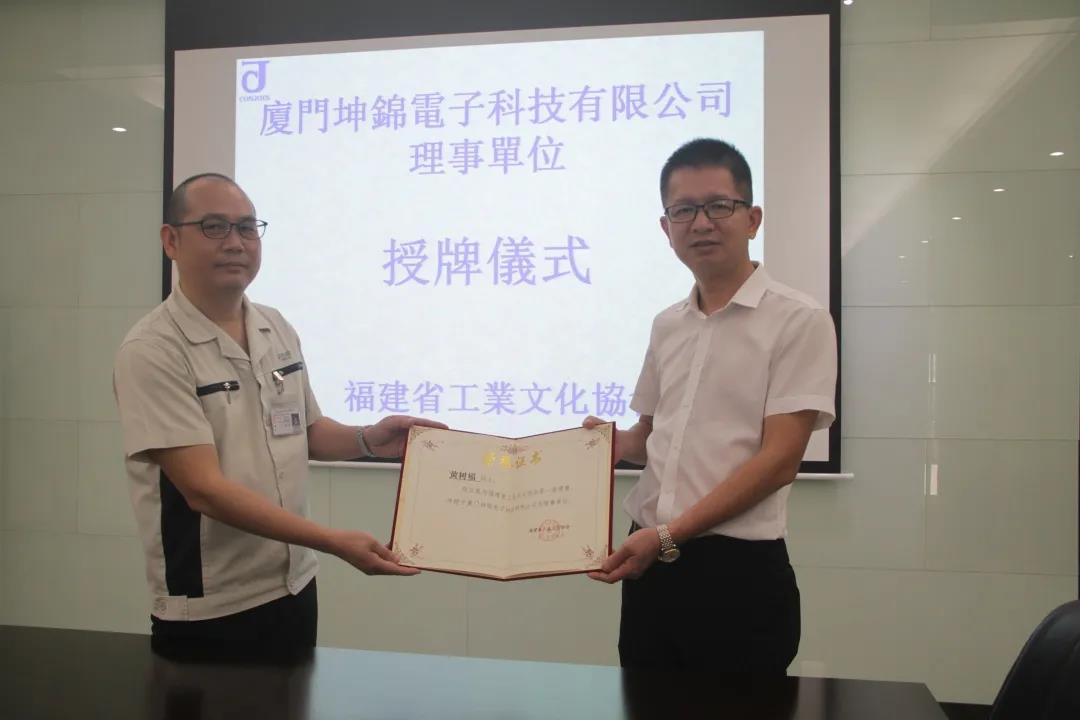 【陈良财秘书长(右)为黄树福副总经理(左)颁发理事证书】